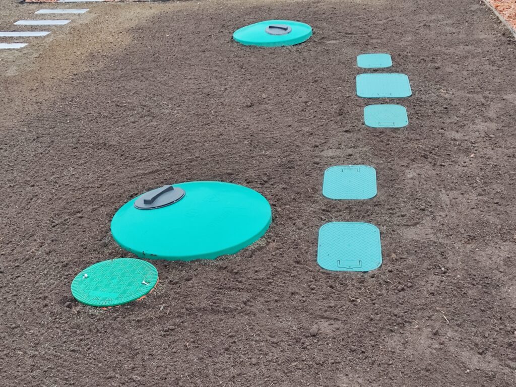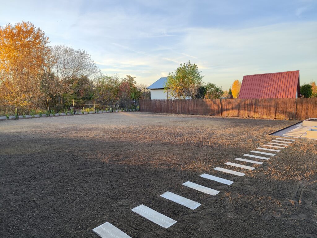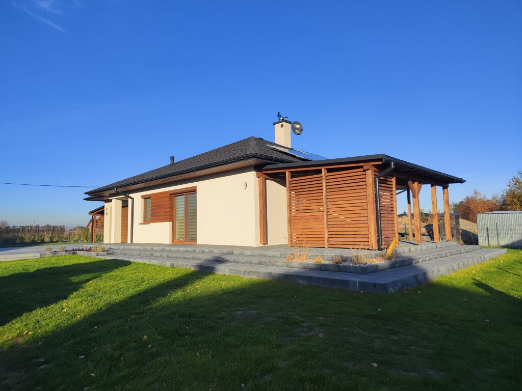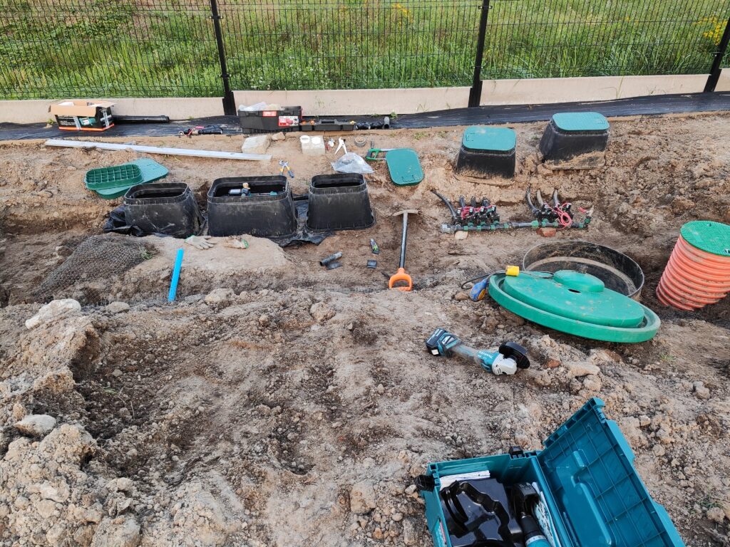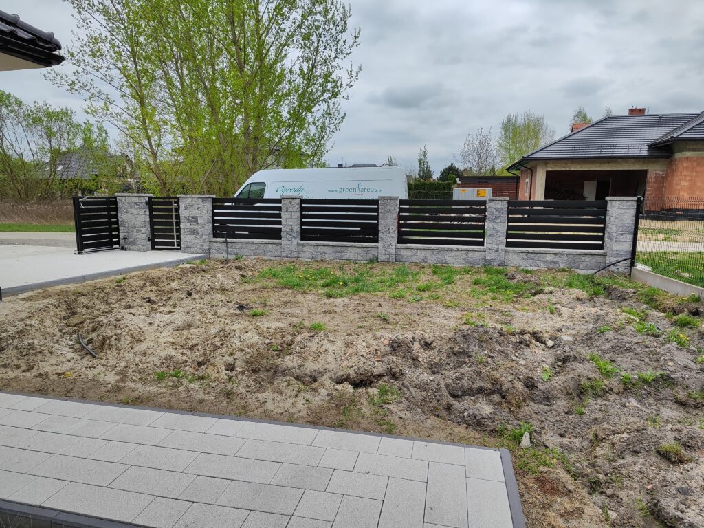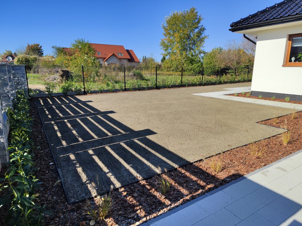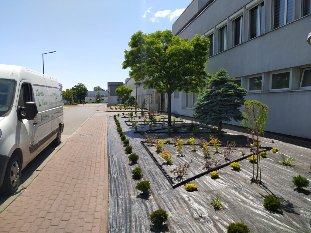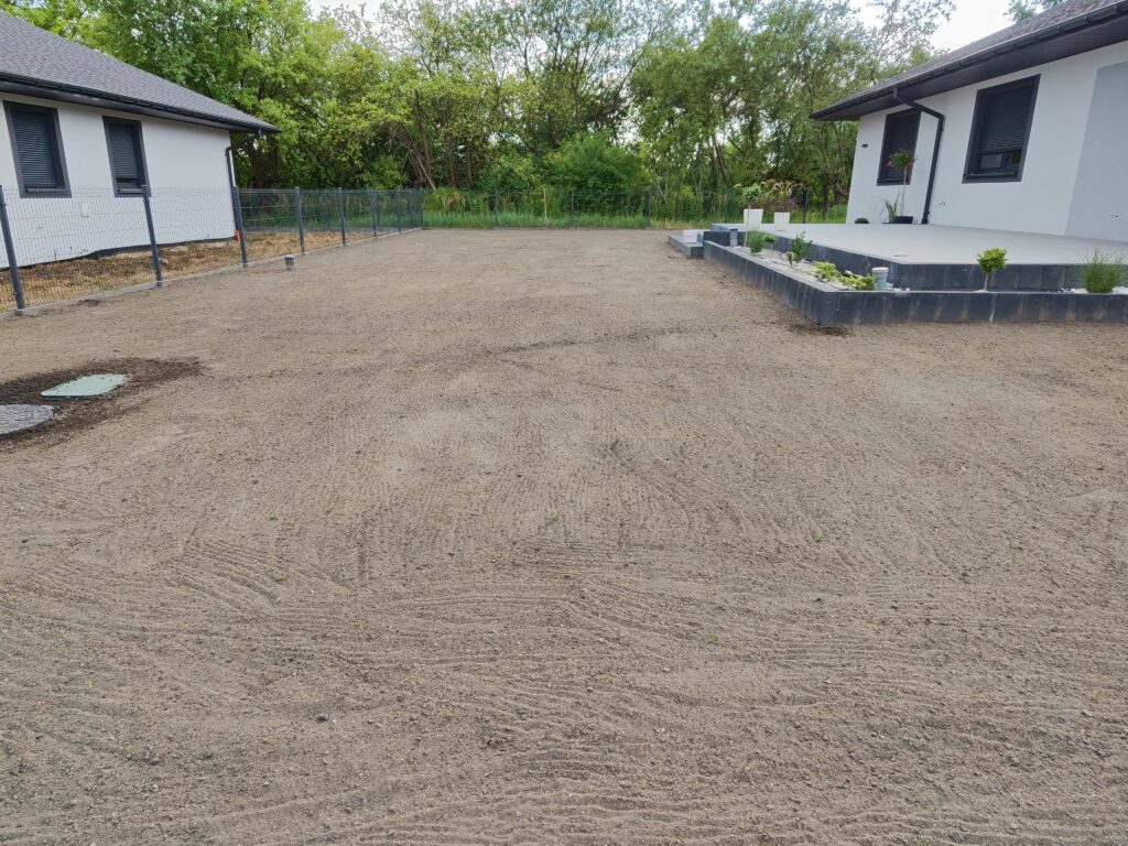 Wykonanie odwodnień, montaż zbiorników na deszczówkę, wykonanie systemów nawadniających, system pozyskiwania wody deszczowej do wykorzystania w domu do celów sanitarnych, montaż siatki przeciw kretom, tarasy, sadzenie roślin, sianie trawy, montaż robotów koszących, itp.